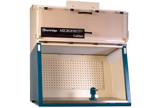 «Чиста шафа» (розмір 140х90х160см) HM1000 забезпечує необхідну високу ступінь чистоти для проведення ремонту і збирання. Фільтрація повітря до 0,5 мікрон дозволяє компактно і економічно ефективно дотримати необхідні вимоги «чистої кімнати» в умовах дизельної майстерні